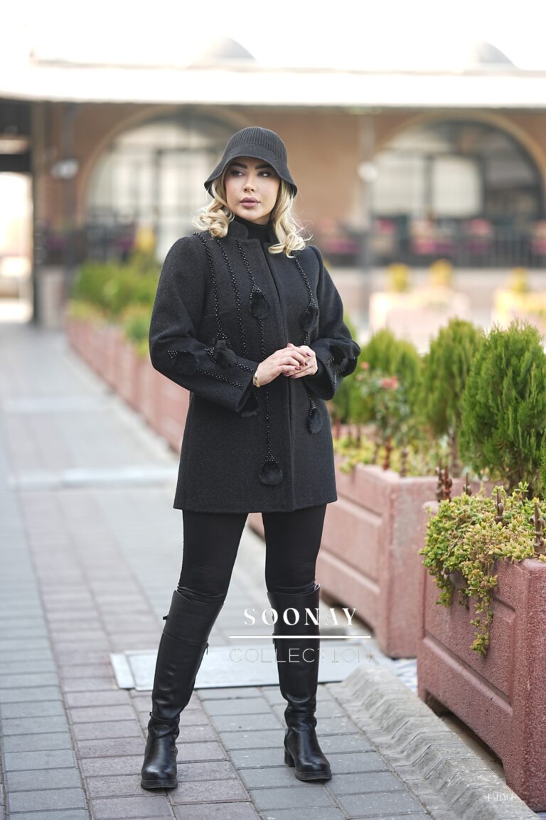 بارانی کوتاه مزونی مشکی طرح نیلای