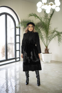 پالتومجلسی مزونی فوتر گیپوردار بلند مشکی طرح نسترن